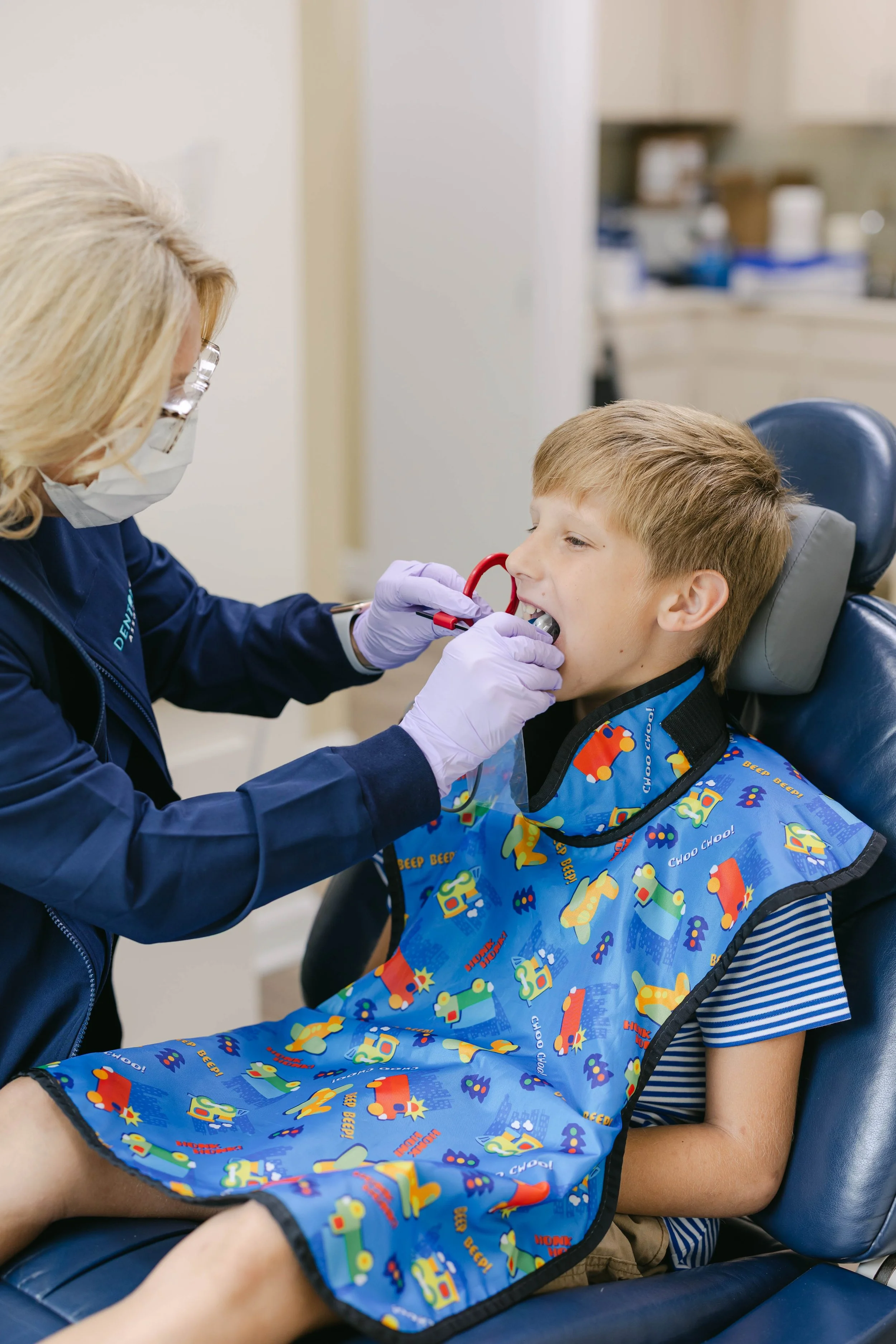 We provide a kid-friendly dental experience, starting with routine checkups for children as young as age 3. To help ease anxiety, we offer nitrous oxide, and our office includes a dedicated waiting area with toys for small children. We also have child-sized glasses, X-ray bibs, and other supplies specifically for young patients.